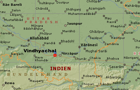 2 Vindhyabewohnerin = Durgā. Am Vindhyāgebirge ist Vindhyachal (Mirzapur Distrikt, Uttar Pradesh) eine Kultstätte für Satī/Durgā