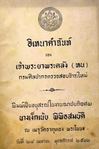 Three other works tell the story with the addition of annotations and explanations of old words and forgotten customs. The study by Suphon Bunnag (สุพล บุนนาค) was published in two volumes in 1960, and republished in her cremation volume in 1975. Khun Wichitmatra (Sanga Kanchanakphan) (ขุนวิจิตรมาตรา (สง่า กาญจนาคพันธุ์)) and Phleuang na Nakhon wrote a series of articles in the magazine Withayasan over 1954–57, collected together in book form in 1961. Kukrit Pramoj (คึกฤทธิ์ ปราโมช) also wrote a series of articles in Siam Rath, collected as a book in 1989.