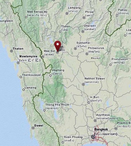 Abb.: Lage von Pa Sang [ป่าซาง] und Mae Sariang [แม่สะเรียง]
