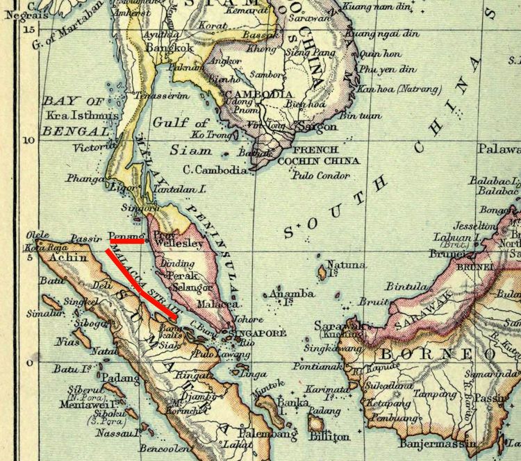 Zwei Kriegsschiffe der britischen Royal Navy versuchen einer französischen Flotte die Durchfahrt durch die Straße von Malacca zu versperren. Den Franzosen gelingt der Durchbruch. Die Franzosen hatten zuvor das britische Kontor in Penang geplündert.