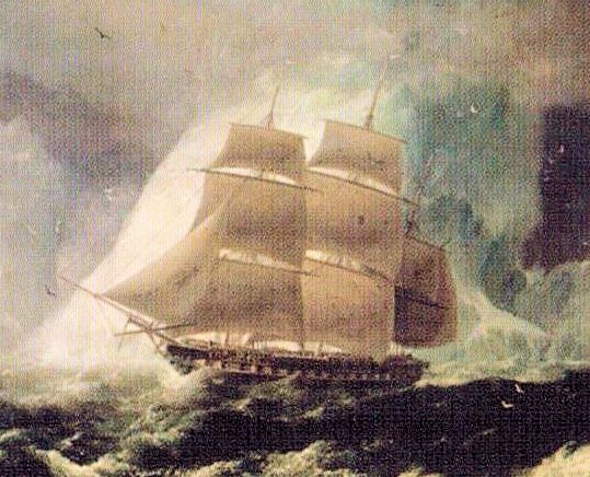 Abb.: HMS Blone mit Rahsegeln / von Robert Dampier (1799 - 1874), 1825