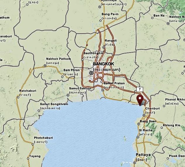 Abb.: Lage der Mündung des Bang-Pakong-Flusses (แม่น้ำบางปะกง)