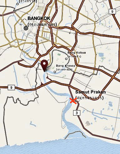 Abb.: Lage von Samut Prakan (สมุทรปราการ) und Nakhon Khuan Khan (= Phra Pradaeng - พระประแดง)