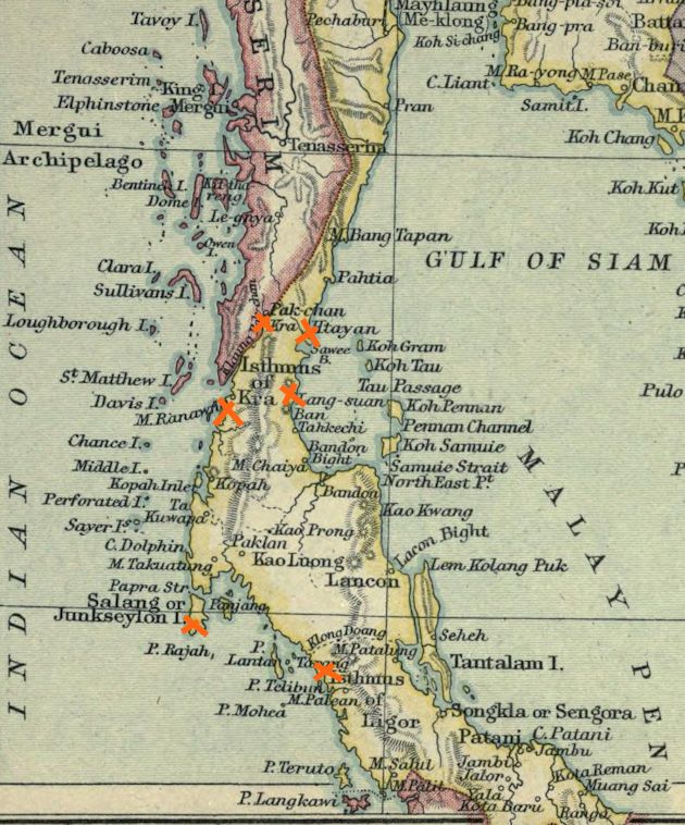 [Bildquelle: Bartholomew, J. G. <1860 - 1920>: A literary & historical atlas of Asia. -- London, o. J.]The Khaw family founded a steamship company known as the Eastern Shipping Company. They also formed the Eastern Trading Company which they tried unsuccessfully to list on the stock exchange. Their business empire also included Tongkah Harbour, the first Asian company involved in dredging the harbor floor for tin (a publicly listed company). The Penang branch of the family were also one of the founders of an insurance company known as Khean Guan Insurance .