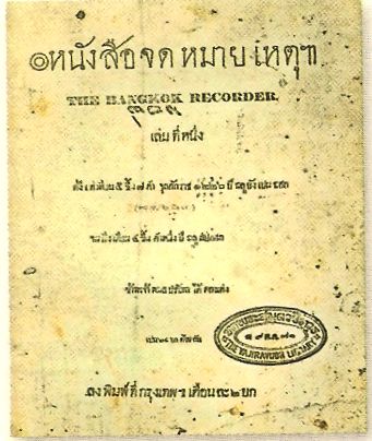 Dan Beach Bradley (1804 - 1873) von der American Presbyterian Mission gibt den Bangkok Recorder (หนังสือจดหมายเหตุ), eine kleine Zeitung auf Siamesisch heraus. Die Zeitung geht nach einem Jahr ein.