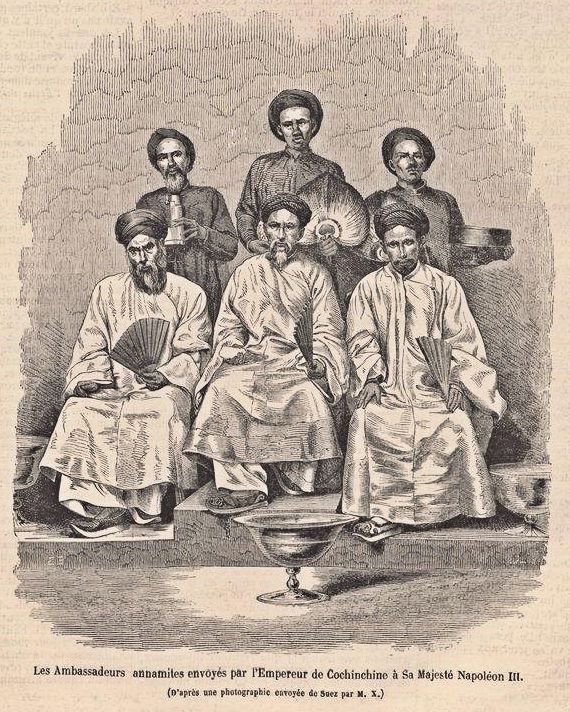 Abb.: Die Gesandten des Kaisers von Cochinchina (Vietnam) zu Napoléon III. -- In: Le Monde illustré <Paris, Frankreich>. -- No 334. -- 1863-09-05. -- Titelblatt