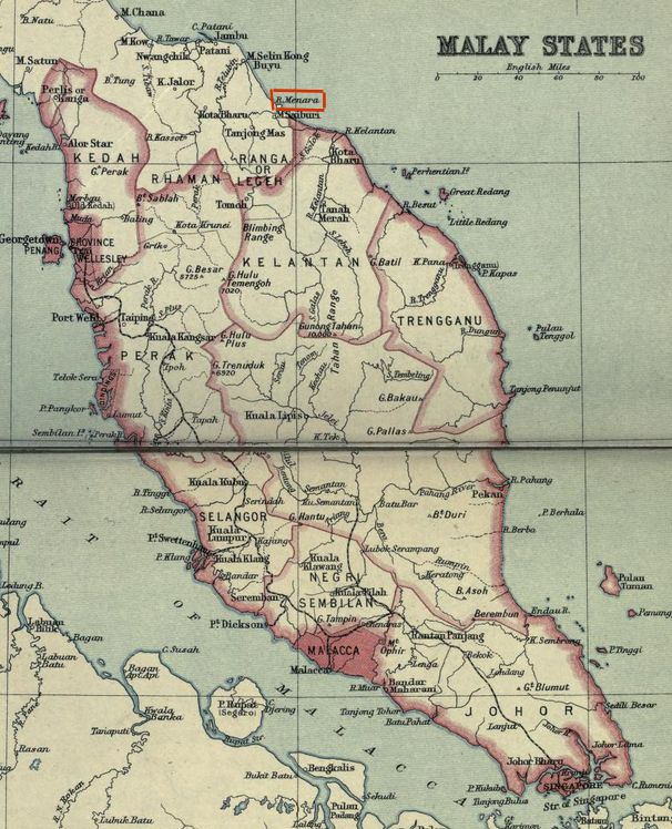 Abb.: Lage von Menara / منارا / บางนรา (heute Narathiwat - นราธิวาส)