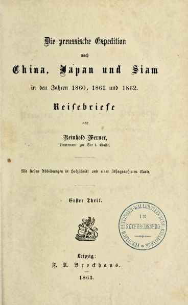 Werner, Reinhold <1825 - 1909>: Die preußische Expedition nach China, Japan und Siam in den Jahren 1860, 1861 und 1862 : Reisebriefe. -- Leipzig : Brockhaus, 1863. -- 2 Teile. -- Über Siam: Teil 2, S. 229 - 287.