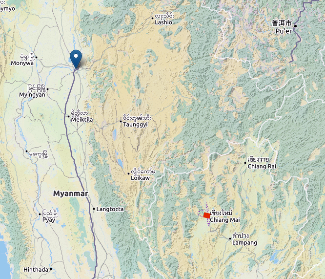 Abb.: Lage von Chiang Mai [เชียงใหม่] und Ava [အင်း]