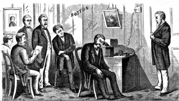 Alexander Graham Bell (1847 - 1922) überträgt Vorträge per Telefon von Salem nach Boston (ca. 25 km).