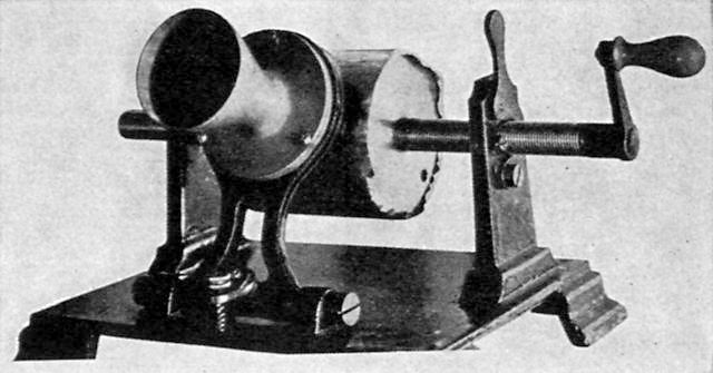 Abb.: Erstes Versuchmodell von Edisons Phonographen