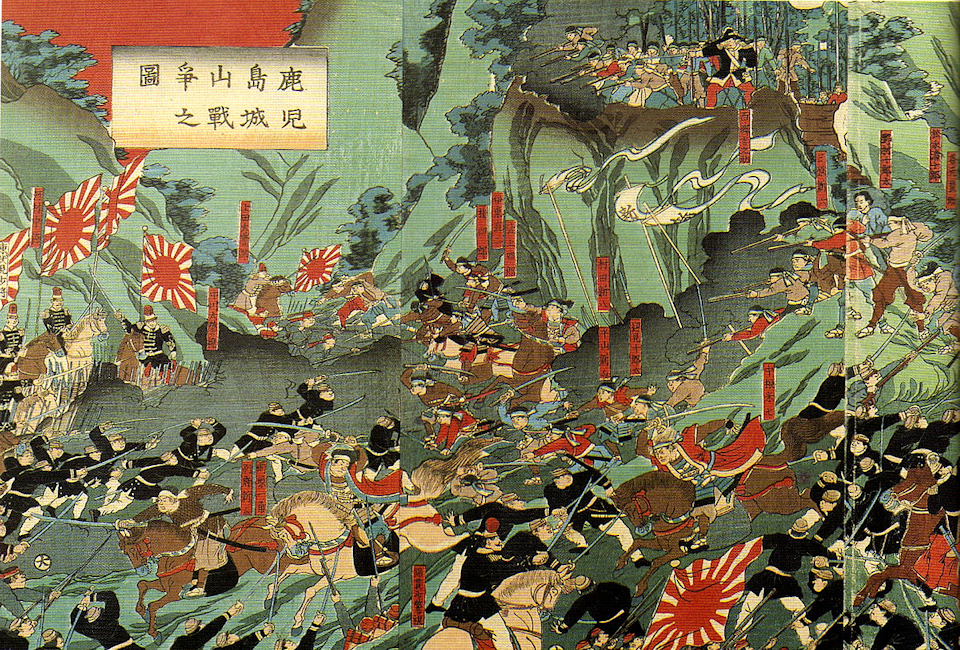 Japan: Satsuma-Rebellion (西南戦争): Revolte der Samurai der Provinz Satsuma (薩摩国) gegen die Meiji-Regierung (明治天皇). Wird in der Schlacht von Shiroyama (城山の戦い), 1877-09-24, unter General Aritomo Yamagata (山縣 有朋, 1838 - 1922) niedergeschlagen. Der General gilt als Vater des modernen japanischen Militärs.