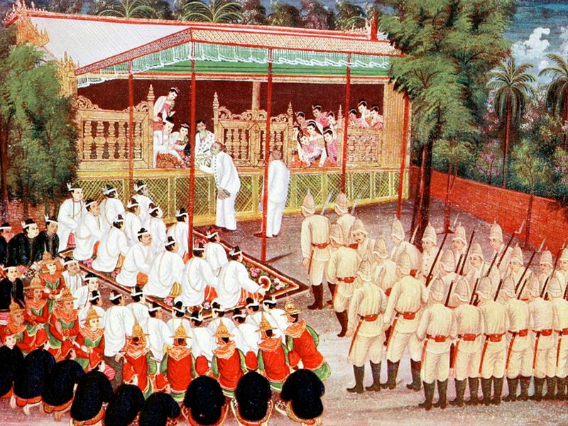 - This embassy had previously been to Europe and was of the opinion then that Burma should have come to terms with England, but the King's Ministers disagreed and the Court's flatterers were simply bent on pushing the King to resist the British. The King, according to the ambassador, did not even know his people or country, and was certainly not informed of the events around him since he stayed inside the Palace all the time except for his only once a year appearance outside the palace walls.