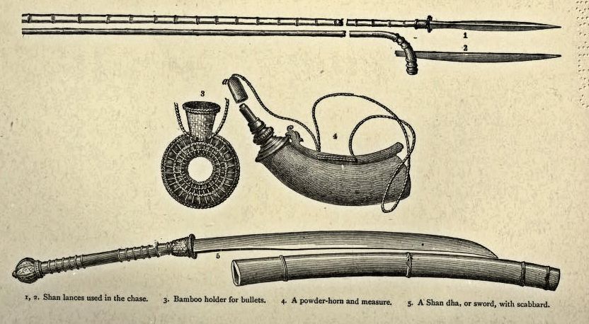 We made the acquaintance of the spirit-farmer, who speaks very bad Siamese, though he has lived thirty years in the country and has a houseful of Siamese wives. He is the head of some 300 Chinamen who reside in the province. Amongst these are only four who claim the privileges of British subjects. Parties of Burmese, or more probably Toungthoos [P