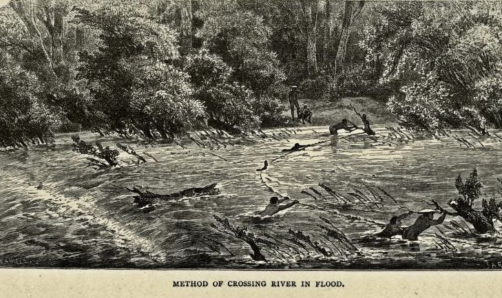 "At 8.30 we passed Ban Tha Kasen, and half an hour later stuck on a sandbank. Some minutes were spent in crossing from side to side of the river in search of a channel, and when it was found the men abandoned their sculls for poles, for the current had suddenly become swifter. The official who accompanied us today was very communicative. He said that last year 500 men were impressed in Sukhothai [สุโขทัย] for military service against the Chinese on the northeast frontier, of whom 200 deserted and returned to their homes. They were recaptured and sent up again this year in company with 300 more, of whom sixty-five have already found their way back. He added that buffalo theft was very common. Some time ago the Governor issued very stringent proclamations, in consequence of which several of the thieves were arrested, and confined in prison, but after six or seven months detention they were released upon the payment of heavy fines, i.e. bribes to the governor. We are given to understand that this official grievously oppresses the people, but his province lies out of the ordinary trade routes, and his misdeeds are seldom reported to the king. [...]