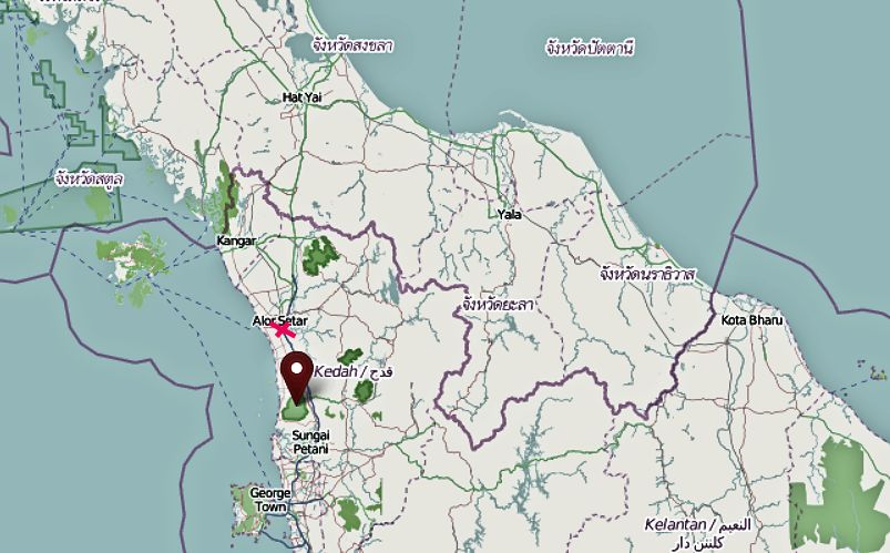 Abb.: Lage von Alor Setar und Kedah Peak (heute: Gunung Jerai)