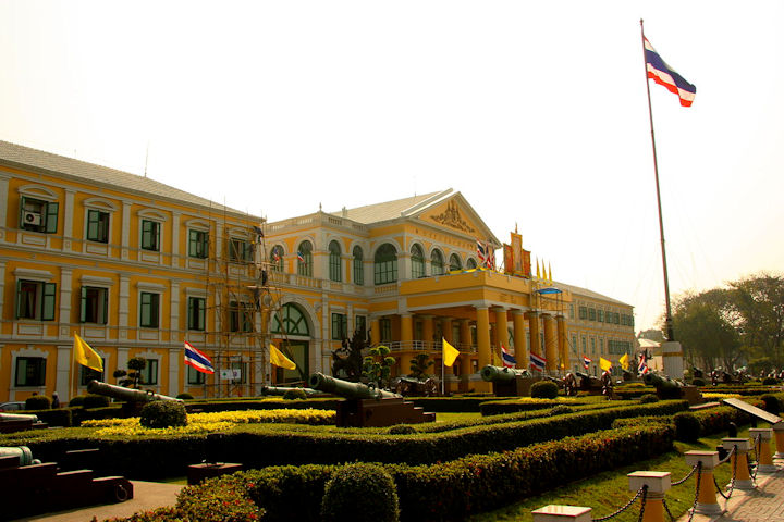 Eröffnung der neuen Militärkaserne (heute: Sitz des Verteidigungsministeriums) in Bangkok. Baubeginn 1882. Architekt: Gioachino Grassi (1850 - 1890). Baukosten 400.000 Baht.