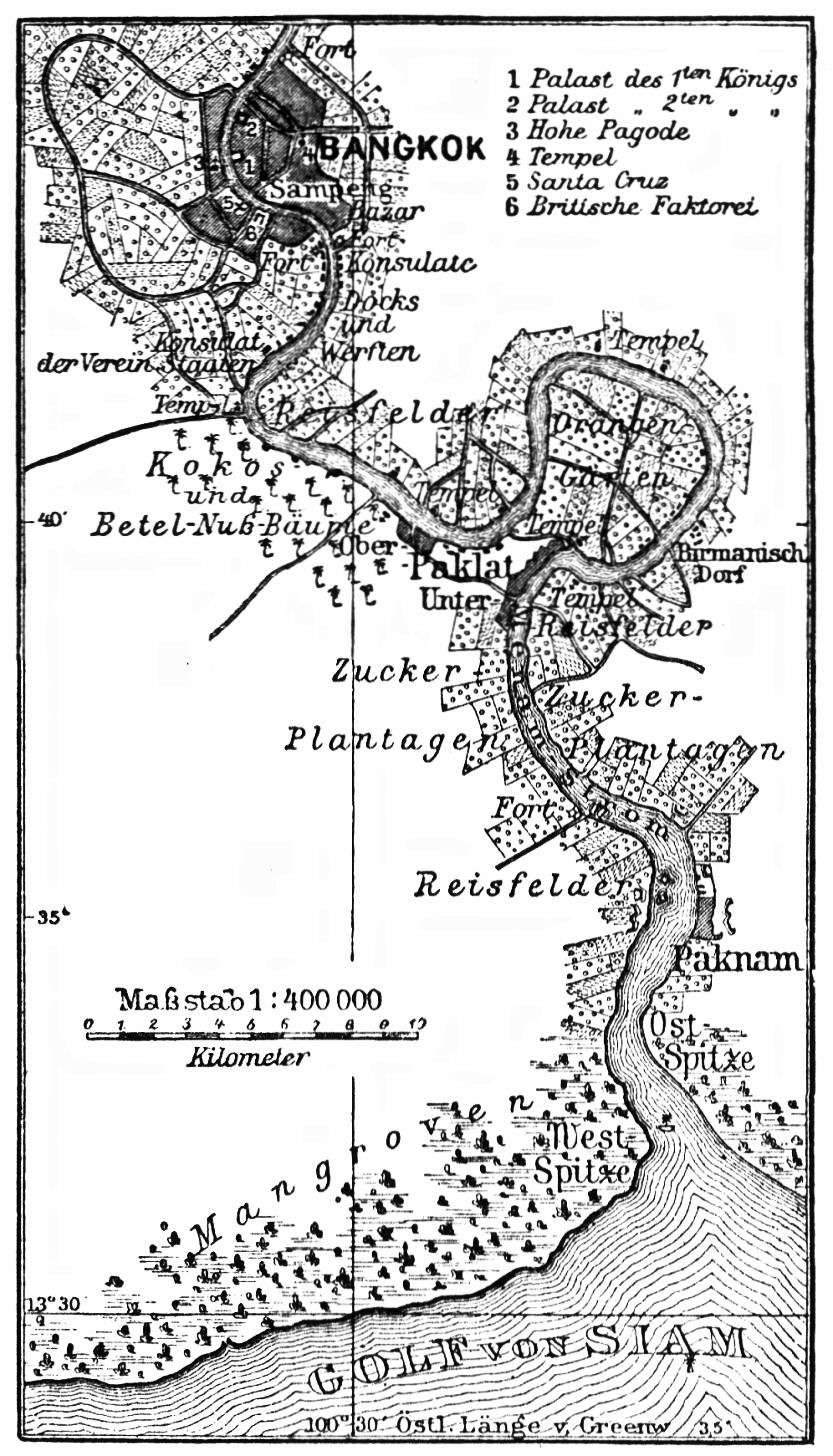 [Quelle: Satow, Ernest Mason <1843 - 1929>: A diplomat in Siam : H.B.M. Minister-Resident, Bangkok, 1885-88 / introduced and ed. by Nigel Brailey [1942 - 2008]. -- Rev ed. -- Bangkok : Orchid, 2000. -- 208 S. : Ill. ; 21 cm. -- (Itineraria Asiatica., Thailand ; 8). -- ISBN 974-8304-73-6. -- S. 36f.]