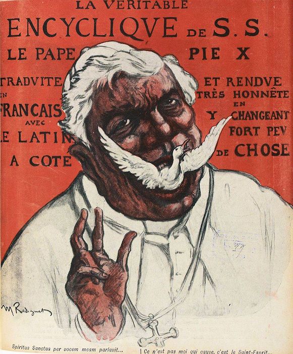 Abb.: Pius X.: "Der Heilige Geist hat mit meiner Stimme gesprochen" / von Maurice Radiguet (1866 - 1941). -- In: L'Assiette au beurre <Paris, Frankreich>. -- 1906-09-01. -- Titelblatt