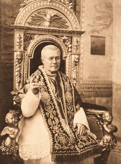 Pius X., geborener Giuseppe Melchiorre Sarto (geboren 1835), ist Papst.