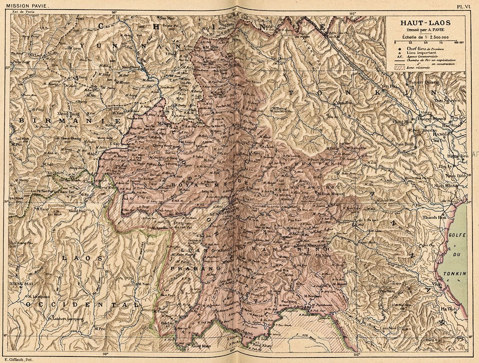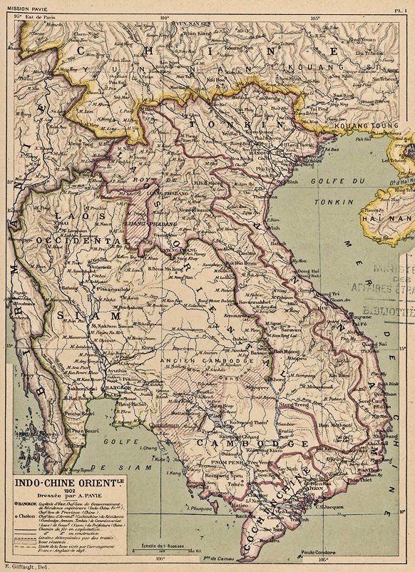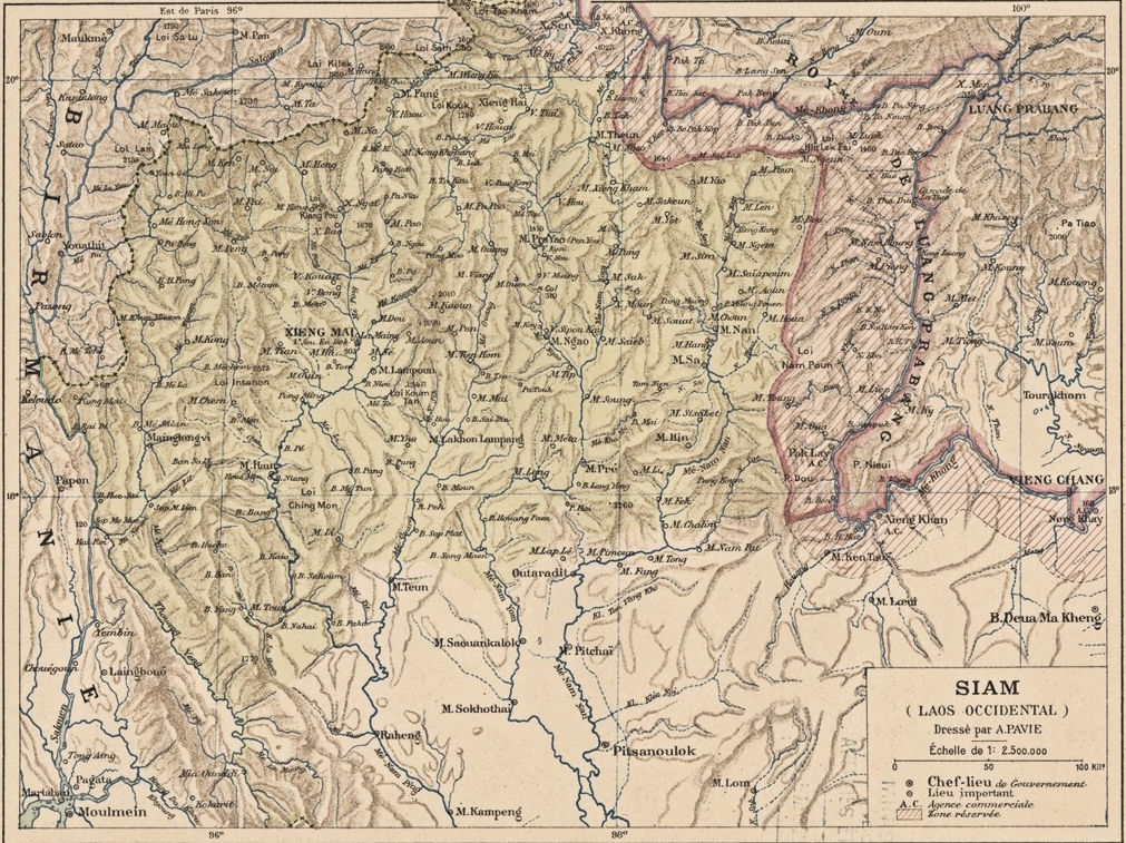 "Considérer les grands cours d’eau connue des frontières naturelles, les croire prédestinés à séparer des Etats et des populations différentes, c'est, parmi les sophismes géographiques les mieux accrédités, l’un de ceux qui trouvent audience auprès de la diplomatie. Les fleuves sont, au contraire, des centres d’attraction, des foyers de vie; presque toujours, d’un bord à l’autre, les relations et les échanges sont continuels et la communauté des intérêts aide les populations riveraines à se rapprocher, à se pénétrer, à se fondre. Il en est ainsi du Mékong [ແມ່ນ້ຳຂອງ / แม่น้ำโขง]. Loin de former une limite naturelle entre le Laos français et le royaume de Siam, il est, au milieu d’un pays qui ne manque que de population et de moyens de communication, le dispensateur de la vie et de la richesse, le propulseur de l’activité économique et politique. Les petits royaumes laotiens ont presque tous leur bourgade principale, — on dirait leur capitale, si le mot n’était un peu ambitieux quand il s'agit de Vien-Tiane [ວຽງຈັນ], de Bassac [Champasak - ຈຳປາສັກ] ou de Luang- Prabang [ຫຼວງພະບາງ], — sur le Mékong; presque tous s’étendent sur les deux rives. Faire du Mékong la frontière entre l'IndoChine française et le Siam, ce serait nous préparer, pour l'avenir, des difficultés interminables; ce serait organiser l'instabilité. Ou bien, en effet, c’est le Siam qui, profitant de notre inertie, pousserait ses avant- postes au delà du Mékong, comme il l’avait fait en 1893; ou bien c’est la France qui, se faisant la tutrice des petits rois laotiens et des populations opprimées, déborderait sur la rive droite et finirait par absorber le Laos siamois. Les négociateurs du traité de 1893 l'avaient parfaitement senti, eux qui avaient mis tant d’insistance pour obtenir la clause relative à la zone de 25 kilomètres qui faisait du Mékong un fleuve définitivement français.