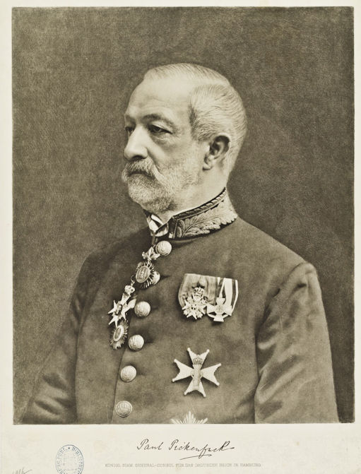 "Paul Pickenpack (Siamesischer Ehrentitel: Luang Sayam Yotban; * 1834 in Hamburg; † 22. Oktober 1903 ebenda) gründete mit Theodor Thies am 1. Januar 1858[1] die erste deutsche Firma in Siam, dem heutigen Thailand. Man trieb aber nicht nur gemeinsam Handel, sondern war auch Agent z. B. für die Hongkong und Shanghai Bank, der Bank von Rotterdam sowie für mehrere Transport- und Schiffsversicherungen. Dadurch erwarben sich Thies und Pickenpack offenbar so viel Vertrauen, daß beide bis mindestens 1868 nicht nur jeweils abwechselnd Konsul bzw Vizekonsul für die Hansestädte Hamburg, Bremen und Lübeck wurden, sondern auch für Schweden/Norwegen und die Niederlande. Die Konsulatsräume befanden sich in der Firma Pickenpack, Thies & Co. Die Firma hatte von Anfang an auch das Konsulat für Schweden/Norwegen und seit 1860[2] auch das der Niederlande übernommen[3].