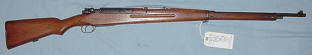 "The Type 45 Siamese Mauser was a service rifle adopted by the government of Siam (now Thailand) in 1903. It was a bolt-action rifle based on the Mauser action, originally chambered for the 8x50mmR rimmed centrefire cartridge (not to be confused with the dimensionally similar Austrian 8x50mmR Mannlicher or French 8x50mmR Lebel cartridges). It was later upgraded as the Type 66 rifle and chambered to fire the 8x52mmR cartridge with a Spitzer (bullet). The Type 45 refers to the year 2445 in the Thai calendar which corresponds with 1903 on the western Gregorian calendar."