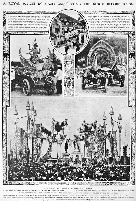 Abb.: "A royal jubilee in Siam: celebrating the king's record reign". -- In: The Illustrated London news <London, Großbritannien>. -- 1909[!]-01-02. -- S. 27