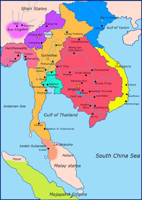 Abb.: Land Phra Ruangs (เมืองพระร่วง) (orange) ca. 1300 n. Chr.