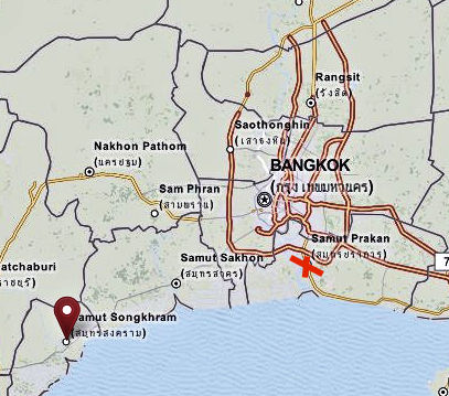 Abb.: Lage von Petriu [แปดริ้ว = Chachoengsao - ฉะเชิงเทรา]