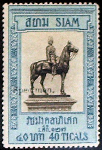 Abb.: Briefmarke zur Einweihung des Reiterstandbilds Ramas V. (พระบรมรูปทรงม้า)