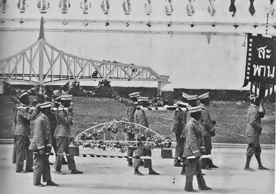 "Es ist nunmehr endgültig festgesetzt worden, dass die neuen Eisenbahnlinien [nach Petriu - แปดริ้ว = Chachoengsao - ฉะเชิงเทรา] am 24. durch den König eröffnet werden. Das Festzelt ist ein imposanter Bau, der uns auf 10,000 Ticals zu stehen kommen wird. Zur Zeit herrscht eine fieberhafte Tätigkeit in der gesamten Eisenbahnverwaltung wie auch beim königlichen Hausministerium, um alles würdig vorzubereiten." [Quelle: Weiler, Luis <1863 - 1918>: Anfang der Eisenbahn in Thailand. -- Bangkok : Chalermnit, 1979. -- 282 S. : Ill. ; 19 cm. -- S. 160]