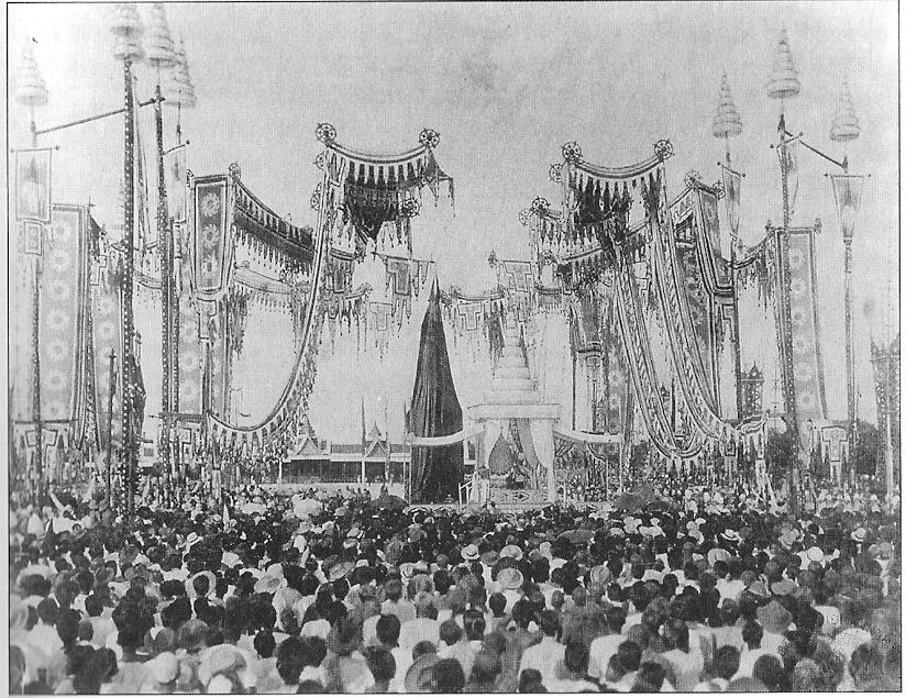 Abb.: Grundsteinlegung zur Ananta Samakhom Thonhalle (พระที่นั่งอนันตสมาคม)