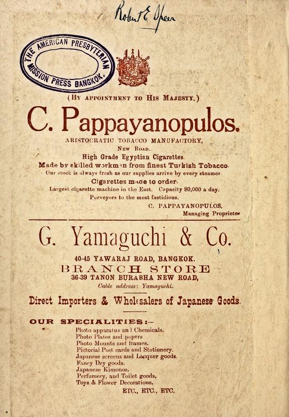 Directory for Bangkok and Siam 1914. -- Bangkok : Bangkok Times, 1914. -- 380, 155 S. : Ill. ; 23 cm.