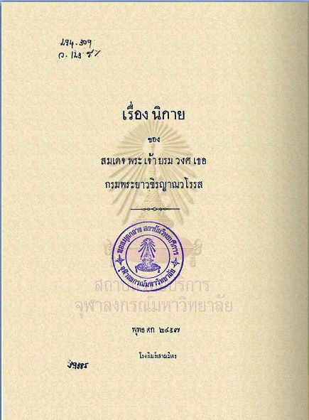 [Quelle: Breazeale, Kennon: The writings of Prince Damrong Rajanubhab : a chronology with annotations. -- Bangkok : Toyota Thailand Foundation : Foundation for the Promotion of Social Science and Humanities Textbooks Project, 2008. -- 60 S. ; 22 cm. -- ISBN 9789740697411. -- S. 23f.]