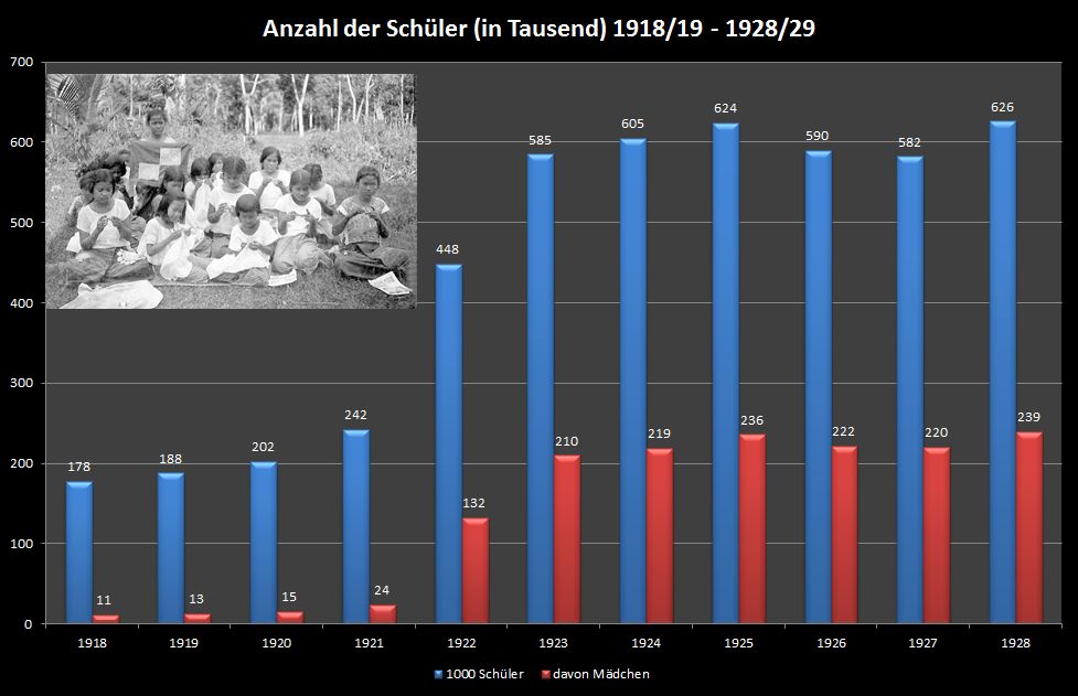 Abb.: Anzahl der Schüler (in Tausend) und Anteil der Mädchen 1918/19 - 1928/29
