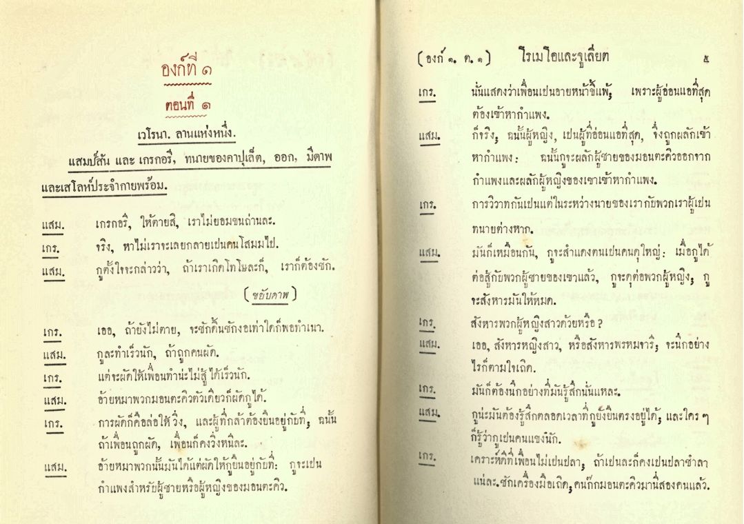 เชกสเปียร์, วิลเลียม [Shakespeare, William] <1564 - 1616>: โรเมโอและจูเลียต / [übers.. von] สมเด็จพระรามาธิบดีศรีสินทรมหาวชิราวุธ พระมงกุฎเกล้าเจ้าแผ่นดินสยาม [Vajiravudh, König von Siam <1880 - 1925>]. -- Originaltitel: Romeo and Juliet