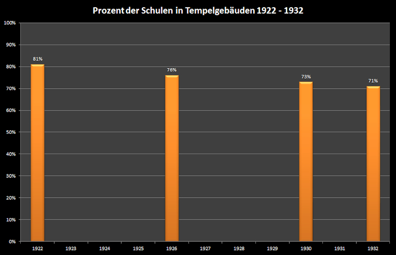 Abb.: Prozentsatz der Schulen in Tempelgebäuden 1922 - 1932[Quelle: Manich Jumsai [มานิจ ชุมสาย] <1908 - 2009>: Compulsory education in Thailand. -- Paris : UNESCO, 1951. -- 110 S. ; 22 cm. -- (Studies in compulsory education ; VIII). -- S. 43ff. -- Fair use]
