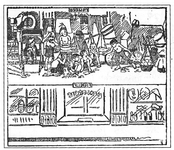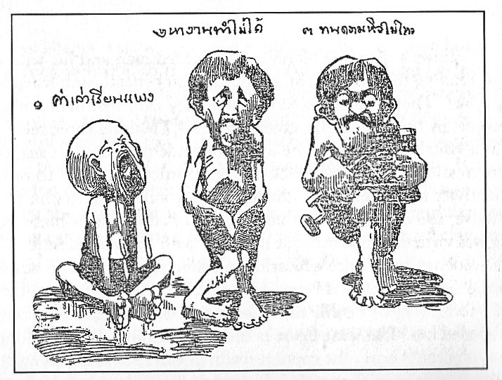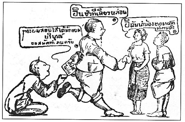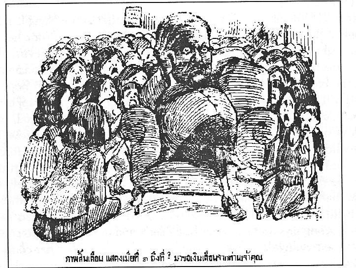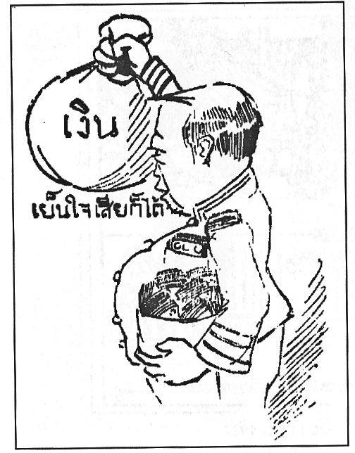 Karikatur über hohe Personen (den König), in der Zeitung Sayam rat (สยามรัฐ):