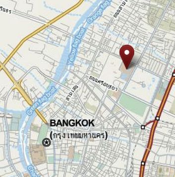 [Bildquelle: OpenStreetMap. -- Creative Commons Lizenz (Namensnennung, share alike)]On the 15th the train bearing the elephants arrived at the royal station at Bangkok. As they were detrained a chapter of monks chanted stanzas, and the animals then took their place in the elaborate procession which had been organized for the occasion. The route which the procession took from the railway station was lined with masses of people all eager to get a view of the unusual sight; but it was certainly only curiosity that inspired them, and not religious awe.