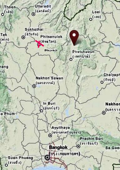 Abb.: Lage von Phitsanulok (พิษณุโลก) und Lomsak (หล่มสัก)