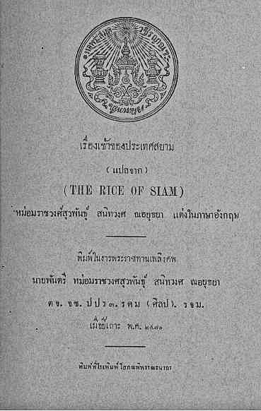 Yai Suvaphan Sanitwongse = ใหญ่ สุวพันธุ์ สนิทวงศ์ <1863 - 1927>: The rice of Siam = เรื่องเข้าของประเทศสยาม. -- Bangkok : Bangkok Times, 1927. -- In Thai und Englisch