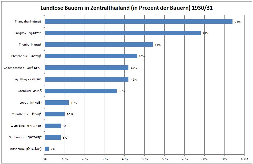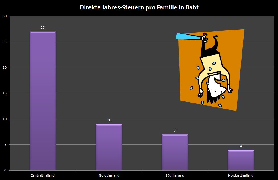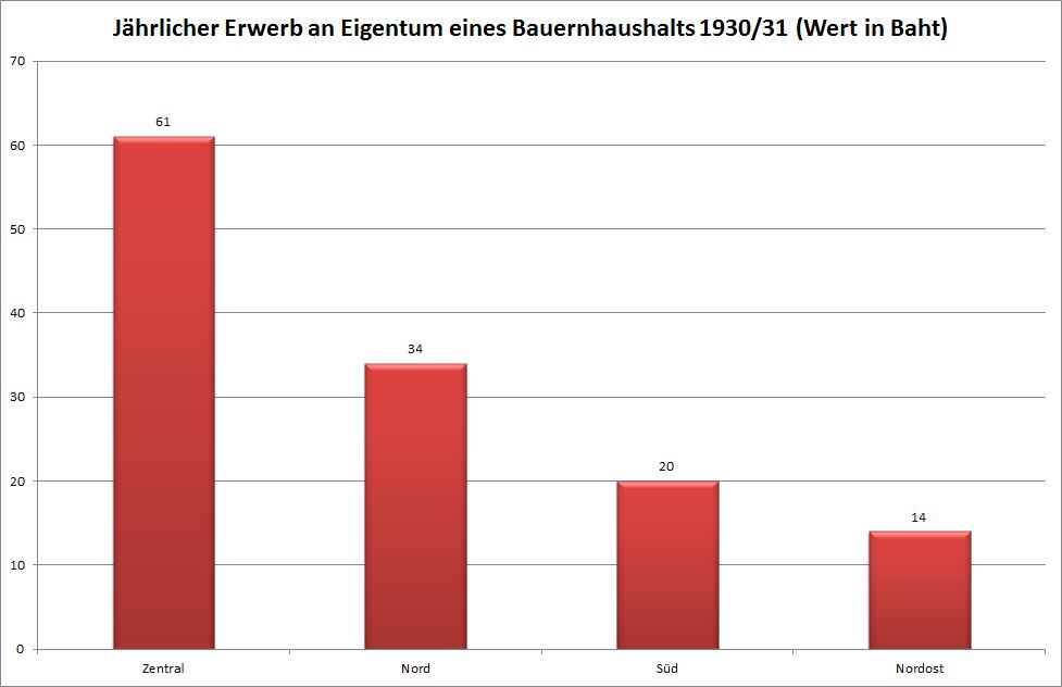 [Datenquelle: Rural economic survey 1930 - 1931. -- S. 78f..]In Zentralthailand betragen die direkten Steuern 7% aller Haushaltsaugaben, im übrigen Siam 5%.