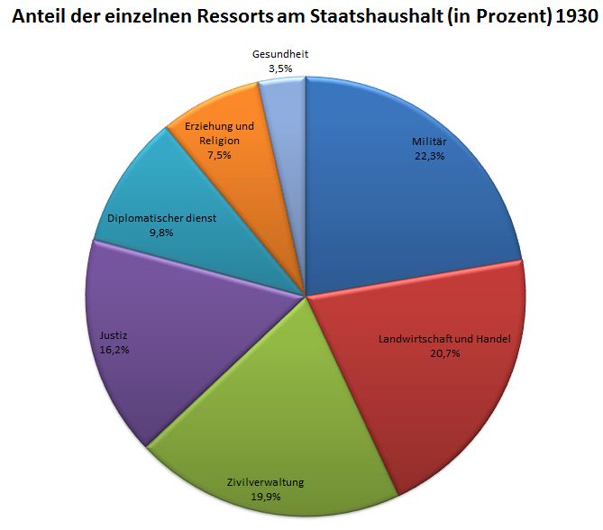 Abb.: Anteil der einzelnen Ressorts an den Ausgaben des Staatshaushalts (in Prozent), 1930