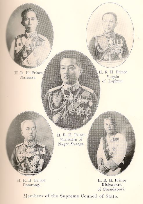 Das Königspaar ist Ausland. Regent während der Abwesenheit des Königs ist Prince Paribatra Sukhumbhand, Prince of Nakhon Sawan (สมเด็จพระเจ้าบรมวงศ์เธอ เจ้าฟ้าบริพัตรสุขุมพันธุ์ กรมพระนครสวรรค์วรพินิต, 1881 - 1944). Das Königspaar besucht: