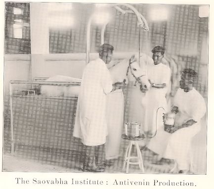 Abb.: Queen Saovabha Memorial Institute (QSMI) (สถานเสาวภา), Bangkok, Gewinnung von Anti-Schlangengift-Serum