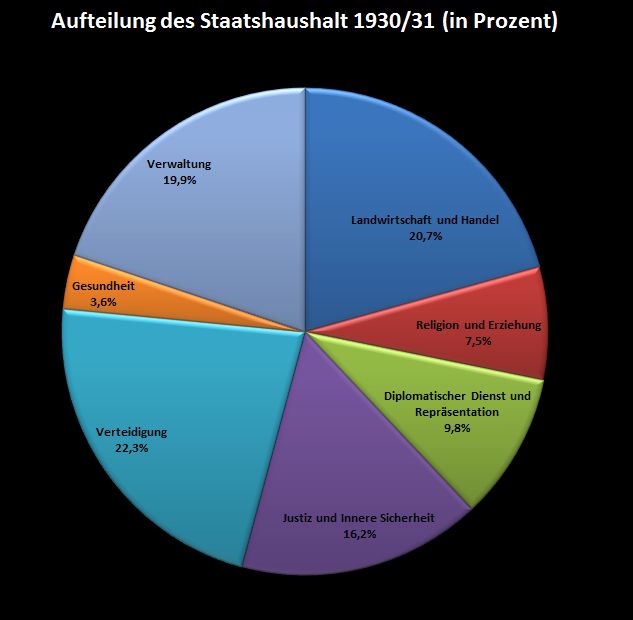 Abb.: Aufteilung des Staatshaushalts 1930/31 (in Prozent)