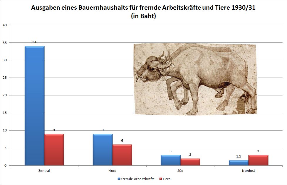 Abb.: Durchschnittliche Ausgaben eines Bauernhaushalts 1930/31 für fremde Arbeitskräfte und Tiere (in Baht)