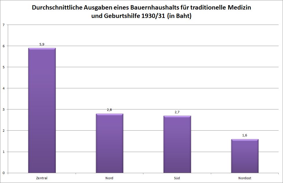 Abb.: Durchschnittliche Ausgaben eines Bauernhaushalts für traditionelle medizinische Behandlung und Geburtshilfe 1930/31 (in Baht)