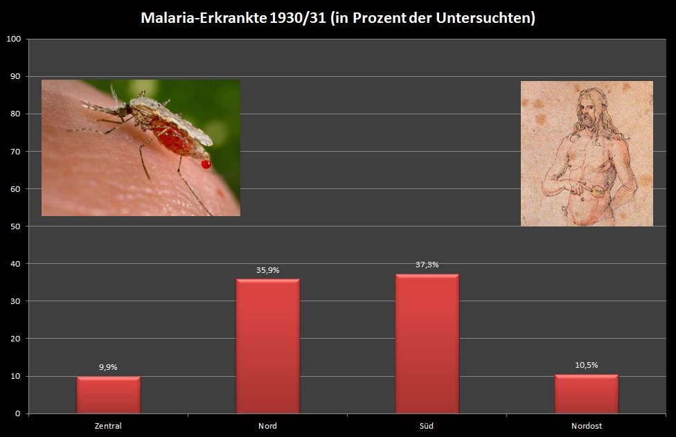 Abb.: Malaria-Erkrankte in Prozent der Untersuchten 1930/31